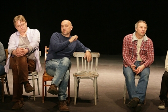 Олег Хапов делает Новикова (Андрей Емельянов), кажется, еще моложе и беззащитнее, чем он есть у Прилепина. По органике, пластическому рисунку он больше похож на подростка, чем на героя за 20. Выходит история о запоздавшем, но стремительном взрослении. А сценическая версия повести, несмотря на то, что изначально есть попытка превратить ее в полноценную пьесу, движется в сторону пьесы-монолога. Режиссер уводит остальных персонажей в воображаемый мир героя. Всех их мы видим немного ненастоящими, шаржированными. Интеллигент-геолог — отец (Михаил Никитин), недалекая домохозяйка — мать (Марина Крюкова), отсидевший, приходящий с тюремными уроками жизни дядя (Владимир Богданов), по-гестаповски жестокий мент (Евгений Браженков)… Впрочем, нет, последний в какой-то момент будто выходит из пространства воображения, выходит, чтобы утвердить свою, невыгодную для Новикова правду. После этого воображаемый мир героя претерпевает изменения: отец, мать, отсидевший дядя, старшая сестра — все вдруг оказываются на стороне мента, презирающего Новикова и его инфантильный протест. Ребячливый, с распахнутыми от удивления и возмущения глазами герой Андрея Емельянова набирает трагизма, кажется, не столько от самого допроса, сколько от того, что горе его никто не готов воспринимать всерьез.На этом эскизе испытываешь ощущение, что с Новиковым ты давно знаком. Есть в нем черты персонажей целого ряда современных пьес: тут на память приходят и молчановский несостоявшийся убийца Дюша, и герой пьесы «Как я стал…» Ярославы Пулинович, и ребята из «Кедов» Любови Стрижак — все эти тексты быстро попали на сцену. «Допрос» Прилепина — еще одна история о герое поколения 20-летних, портрет которого сейчас как будто составляет современный театр.