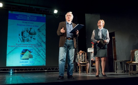 24 марта в честь Юбилея победы и Всемирного дня поэзии на сцене театра состояся– поэтический вечер, посвященный творчеству поэтов, павших на Великой Отечественной войне. Они пришли на фронт совсем юными, мало свершившими в жизни. Грандиозный опыт войны помог раскрыться их таланту, укрепил гражданственность. Среди них Павел Коган, Михаил Кульчицкий, Муса Джалиль, Всеволод Багрицкий. Семену Гудзенко было дано отпраздновать День победы, но через десять лет его догнали старые раны. По замыслу сценариста Елены Куклиной (она же – режиссер и автор музыкального оформления) в поэтическом вечере было представлено творчество более 20 поэтов. Их жизнь и творчество оборвались на взлете. Пришло время вспомнить о них, спасших страну и мир от коричневой чумы, отдать им дань памяти. В поэтическом вечере приняли участие актеры Камерного театра, а также писатель Владимир Вафин, поэт Михаил Богуславский, барды Виталий Казарцев, Константин Просеков, Екатерина Романова, Рафаэль и Мария Валитовы Над видеорядом работал актер, постоянный участник Поэтических посиделок в Камерном театре Владимир Кулешов. В фойе была представлена выставка книг из фондов Центральной городской библиотеки им. А. С. Пушкина.