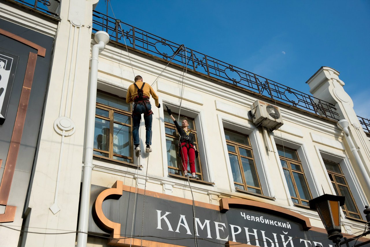 На просмотр постановки, действие которой разворачивается в течение суток на вершине норвежского фьорда, были приглашены челябинские промышленные альпинисты. Перед началом спектакля профессиональный альпинист, директор ООО «Уралпрофсервис» Максим Лузгин совместно с актрисой Камерного Татьяной Кучуриной спустились с крыши театра, обратив внимание прохожих на кратковременное возвращение одной из самых известных и популярных среди молодежи постановок театра.