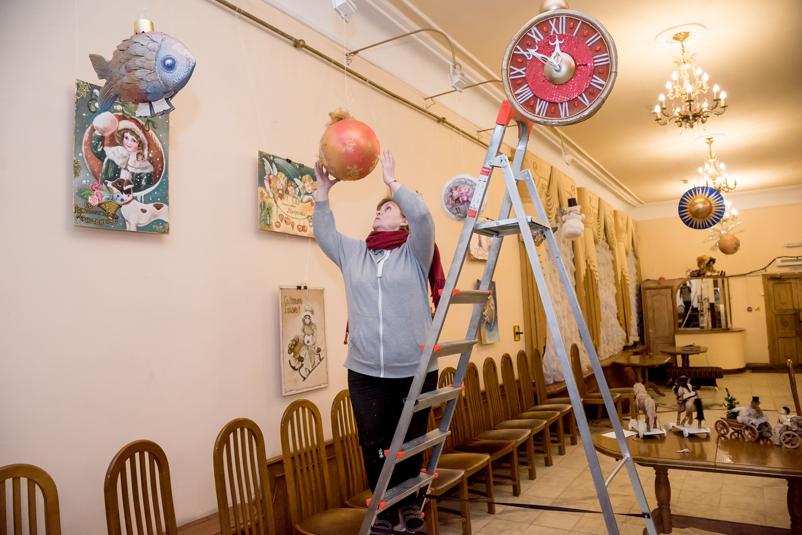 За общим декорированием зорко следила художник, заведующая бутафорским цехом Нина Амелина.