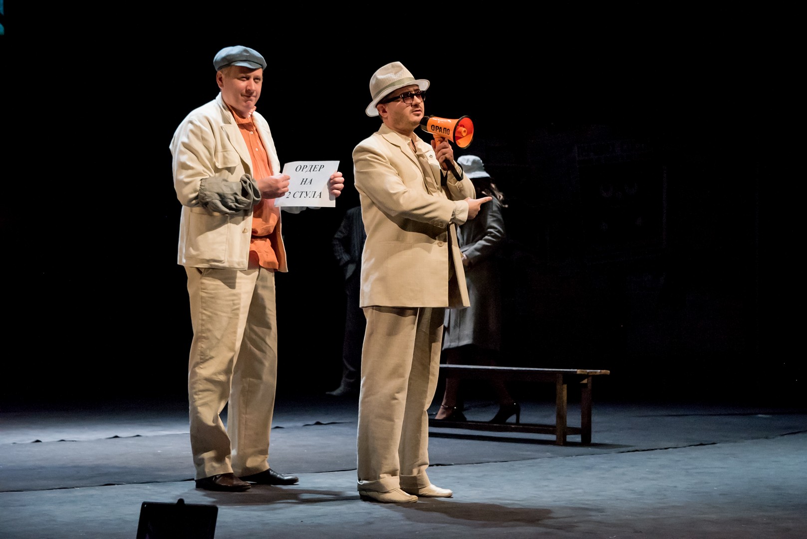 Руководителем проекта «Двенадцать стульев» стал директор Камерного театра Илья Коломейский, один из активистов «Зеленого театра». Илья Анатольевич не отказал себе в удовольствии и самому выйти на сцену, пусть в маленькой роли завхоза.
