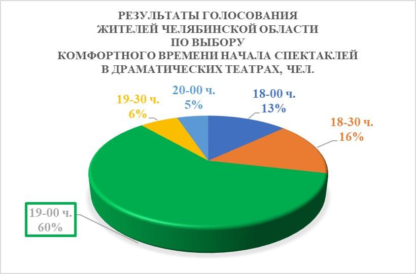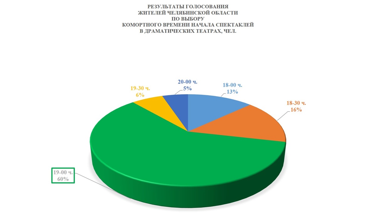 Ранее было проведено голосование "Выберем комфортное время для начала показа спектаклей и концертных программ" среди жителей Челябинской области с подтвержденной учетной записью ЕСИА. Результаты данного голосования приведены в сводной диаграмме.