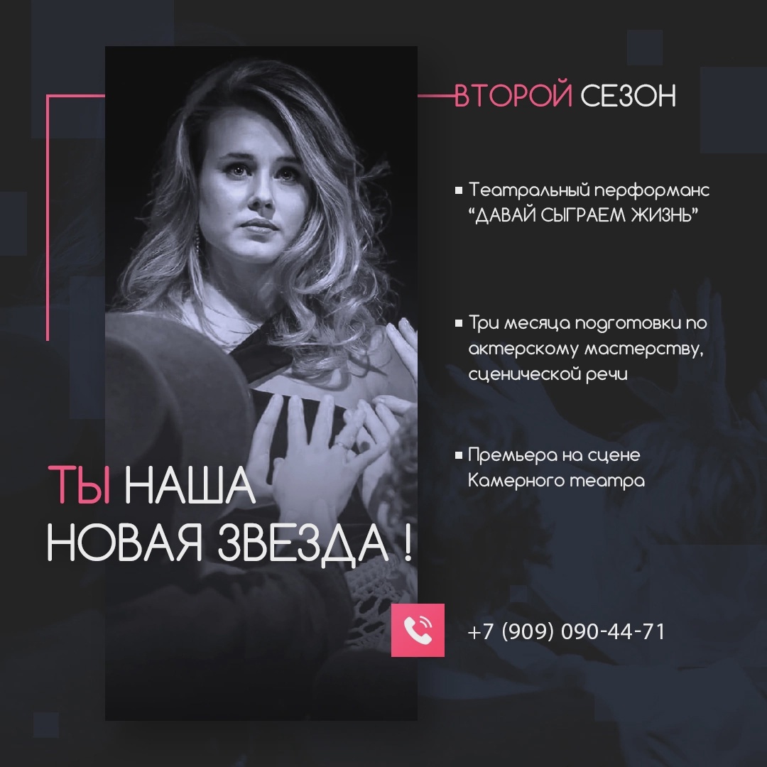 17 января 2022 года первый сезон проекта завершился фееричным театрально-поэтическим перформансом по произведениям челябинской поэтессы Саши Кудос, где все роли - главные. Аншлаг, овации, невероятная атмосфера тепла и живые отклики от зрителей! На сцене Камерного театра - восемнадцать обычных людей, в течение всего трёх месяцев прошедших подготовку по сценической речи и актёрскому мастерству под руководством профессионалов. За время проекта произошла удивительная трансформация каждого участника, плоды которой они теперь применяют и в своей обычной жизни. А выход на большую сцену стал для многих из них настоящим событием! Второй сезон проекта "ДАВАЙ СЫГРАЕМ ЖИЗНЬ" стартует 21 февраля 2022 года с кастинга участников в Камерном театре. Принять участие может каждый, кто хочет открыть в себе новые грани, обогатить свою жизнь творчеством и выйти на большую сцену уже через три месяца. Участникам необходимо будет прочитать со сцены стихотворение или отрывок из прозы.