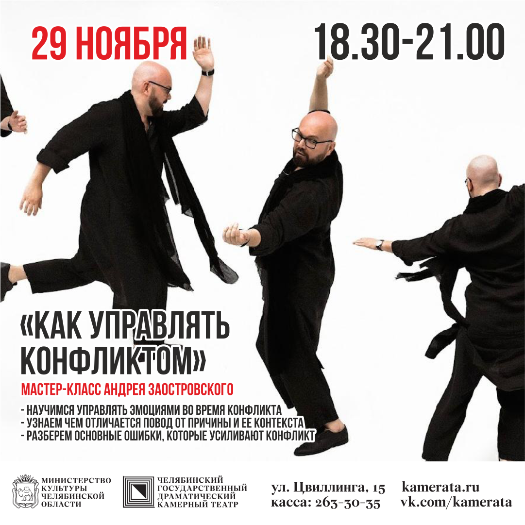 29 ноября в 18:30 ч. в Камерном театре пройдет новый мастер-класс ведущего бизнес-психолога Андрея Заостровского.