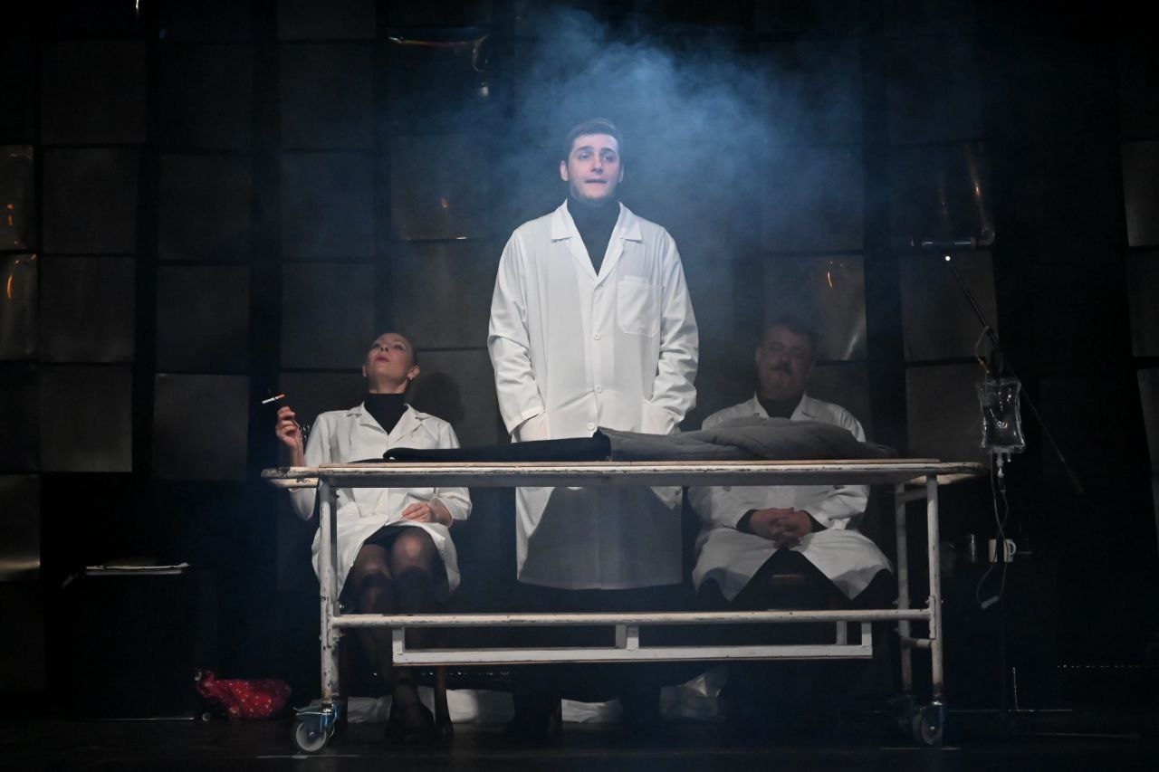 Вербатим с подробностями физиологического очерка, запахом медицинского спирта, рентгенографическими снимками на стенах и каталкой, на которой и пьют, и режут, и играют в карты.