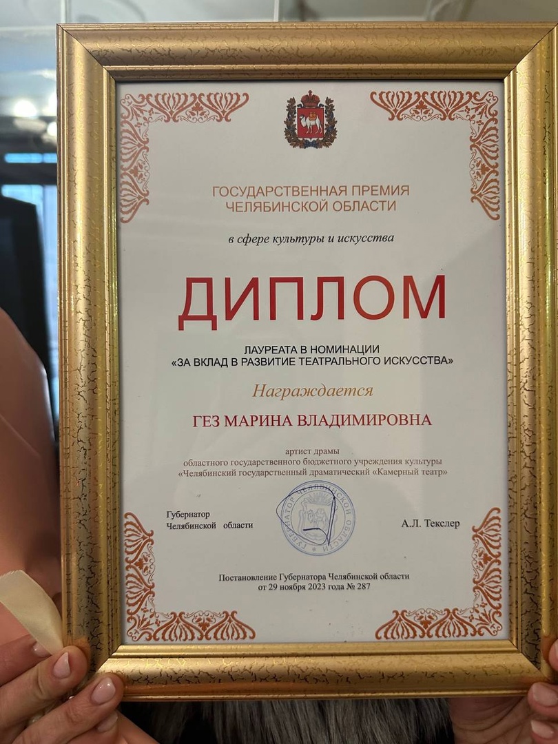 Диплом за вклад в развитие театрального искусства в торжественной обстановке вручил лично губернатор Челябинской области Алексей Текслер.