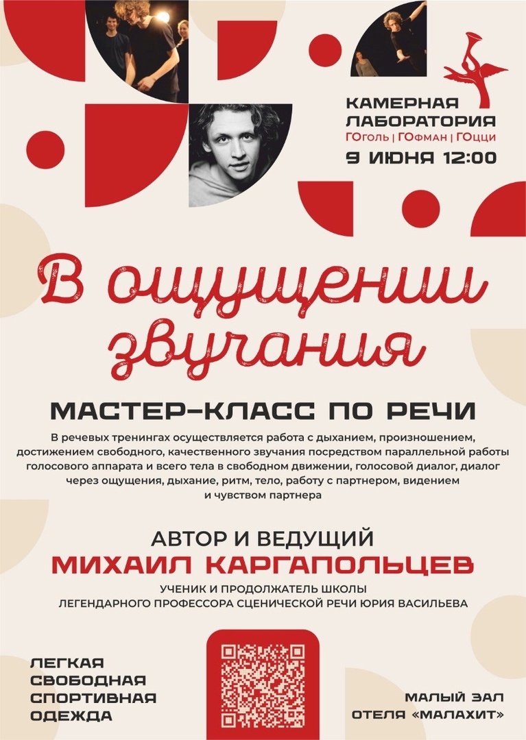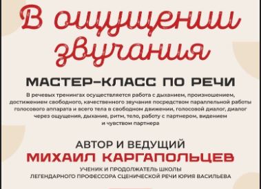 Режиссер Михаил Каргапольцев, который в нашем театре скоро начнет репетиции новой постановки «Слон» по пьесе А. Копкова, проведет мастер-класс по речи в рамках театральной лаборатории «ГоГоГо».