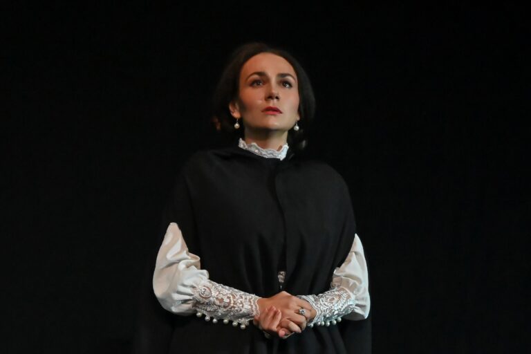 Актёрский ансамбль работает сразу в двух планах существования: они то лошади, то люди, и этот переход порой незаметен. Центральной линией спектакля являются взаимоотношения отца и дочери. Дуня Оксаны Науменко, возвращаясь в отеческий дом, вспоминает свою жизнь с отцом. Актриса существует отстранённо, смотря с дистанции времени на себя и свои поступки.