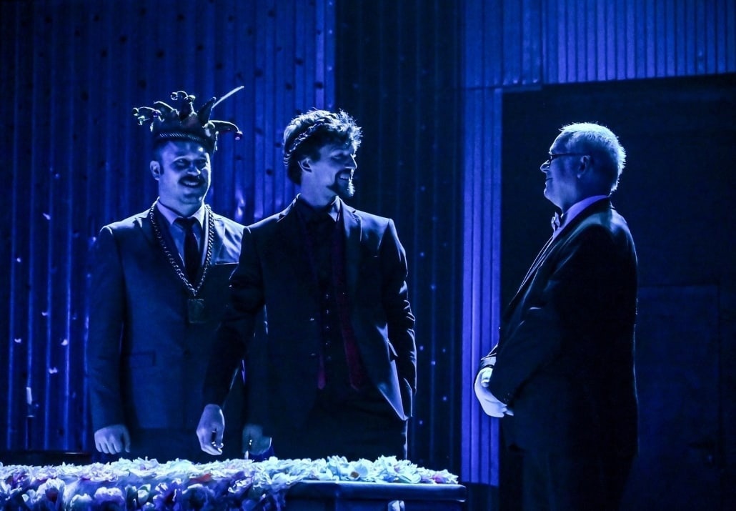 И вдруг — приглашение в королевский дворец Эльсинор. Людям короны кое-что потребовалось от некогда известных актёров. Они должны по просьбе властей участвовать в чествовании нового короля: сыграть что-то проверенное, можно даже затасканную трагедию с конкретной моралью. Первый советник короля подскажет о чём играть, его дочь — зачем играть, а друг наследника — чем (вышедшим из-под пера принца) дополнить пьесу, чтобы стало креативненько.