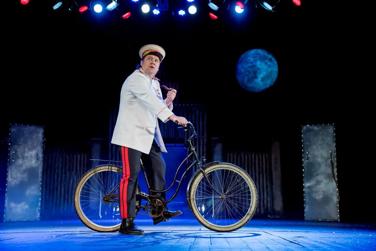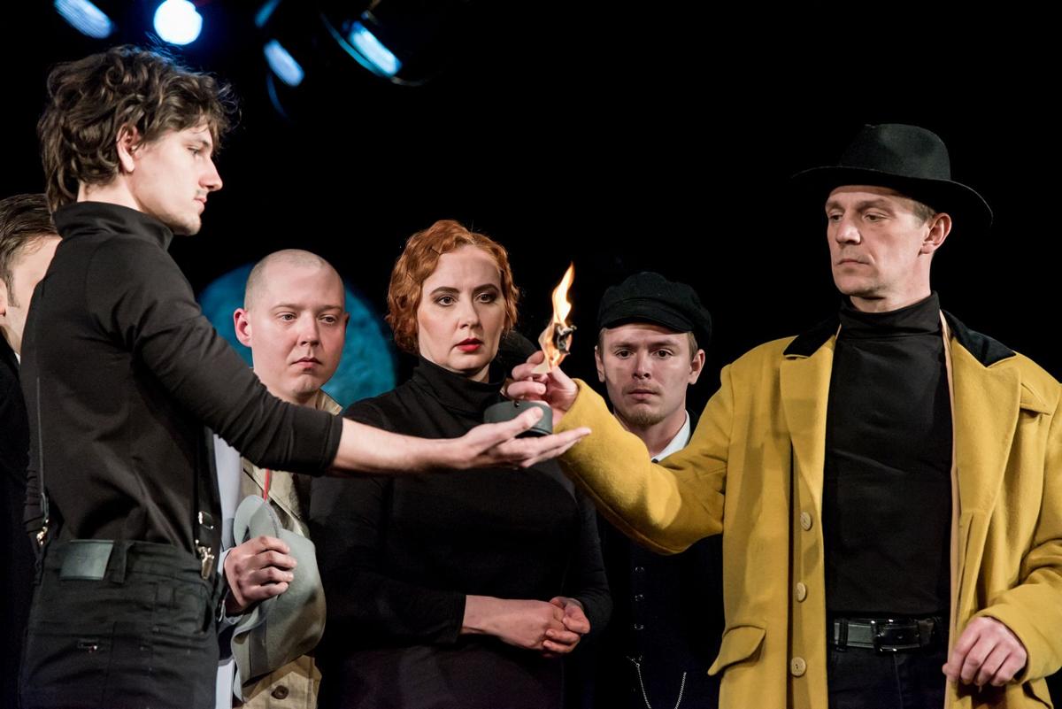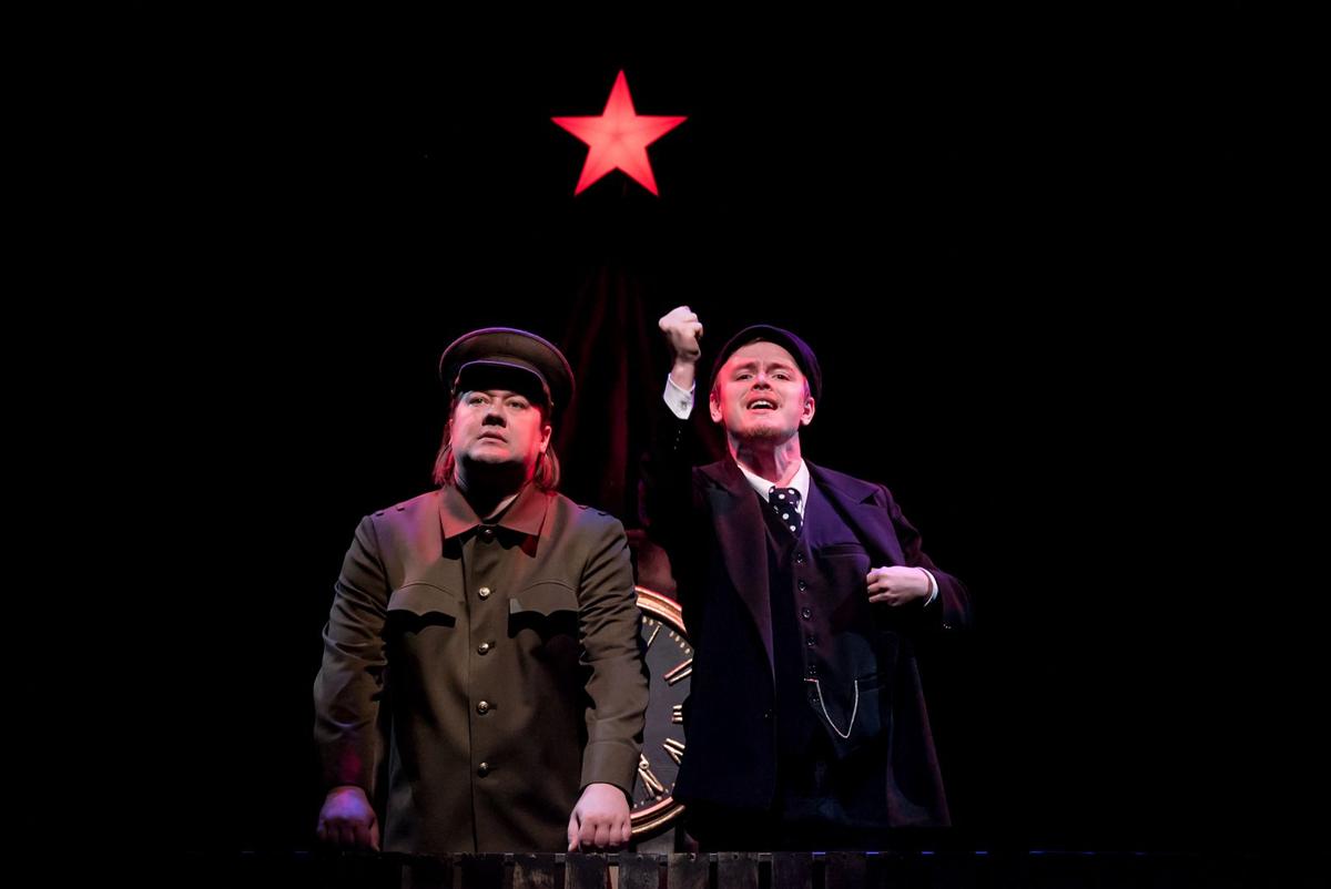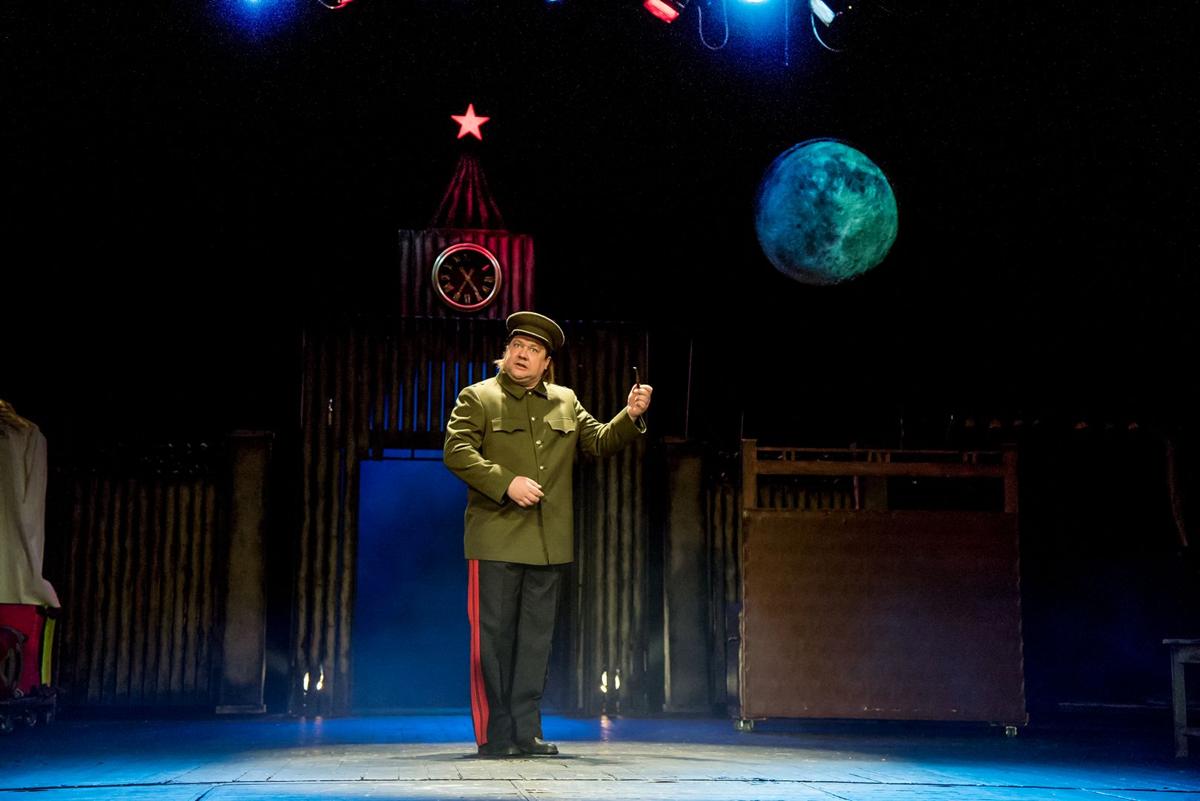 Главный режиссер главного театра Вольдемар Аркадьевич успевает торжественно сообщить нам, зрителям, что театр смело берется за сложную тему, которая в «такое непростое время» вызовет волну «недовольств со всех сторон» — и сталинистов, и антисталинистов, но «мы принимаем вызов истории!» и «наш спектакль станет началом грандиозных похорон сталинизма».