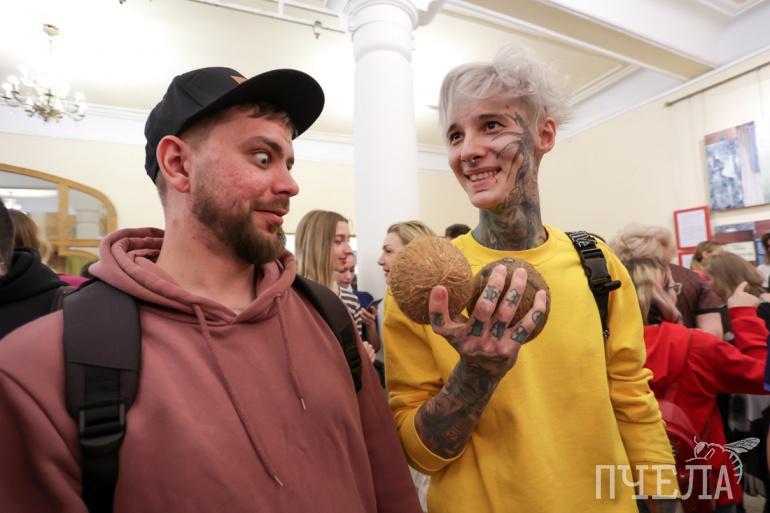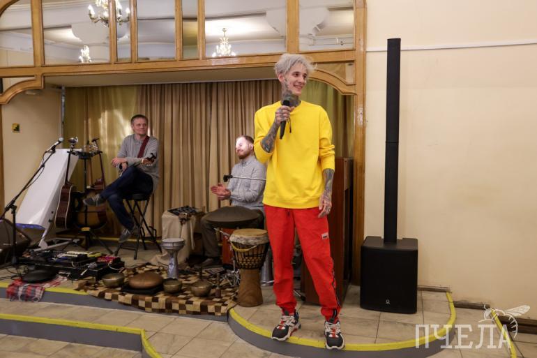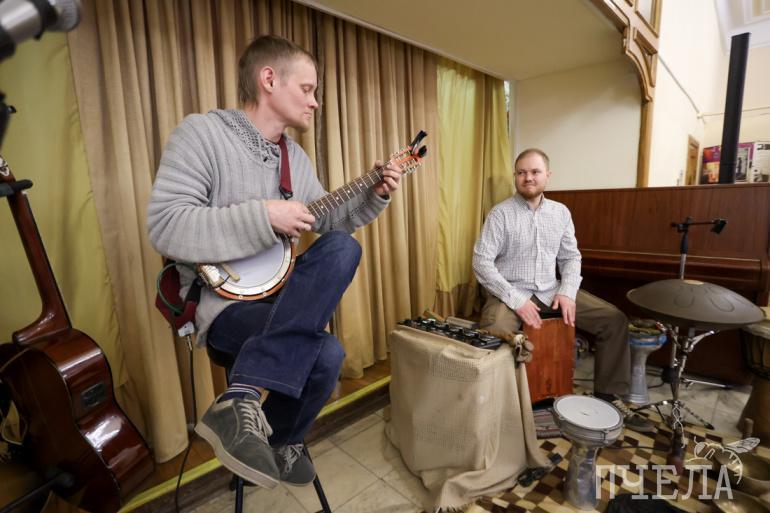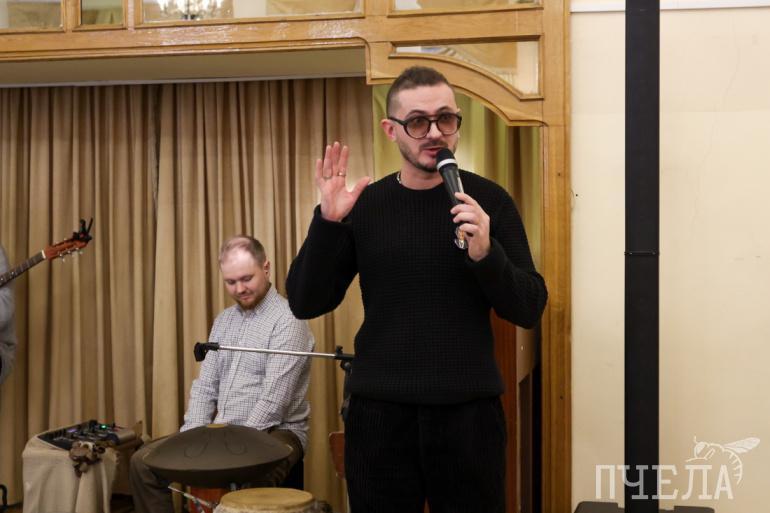 Вернисаж прошел под звуки необычного музыкального инструмента — перкуссии. Участники импровизировали без всяких нот прямо на вернисаже — под впечатлением от увиденного.