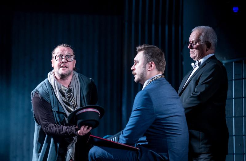 Интересную трактовку образа Горацио представил Александр Сметанин — этот персонаж оказывается вовсе не таким искренним другом принца, как полагал Шекспир. Еще в спектакле есть похожий на Горлума из «Властелина колец» суфлер в исполнении Владислава Филипенко. И король Клавдий, который приходит на премьеру придворного представления запросто — в короне и красных труселях. Эту роль исполнил Дмитрий Блинков.